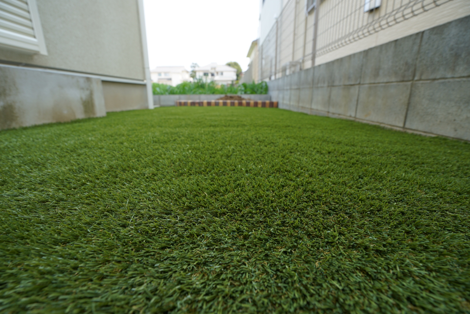 基本的にお手入れは必要ございません。しかし、人工芝と外壁の隙間からは、 どうしても草が出てきてしまうこともあるので、取ってあげてください。